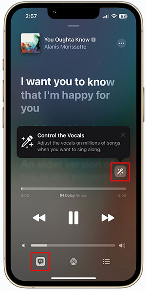 Ngoài ra còn có một thanh trượt điều khiển âm lượng mới, cho phép giảm dần giọng hát gốc để người dùng có thể tự hát. Tính năng này chỉ khả dụng cho những người đăng ký Apple Music, và chắc chắn sẽ được yêu thích bởi những người đam mê ca hát.