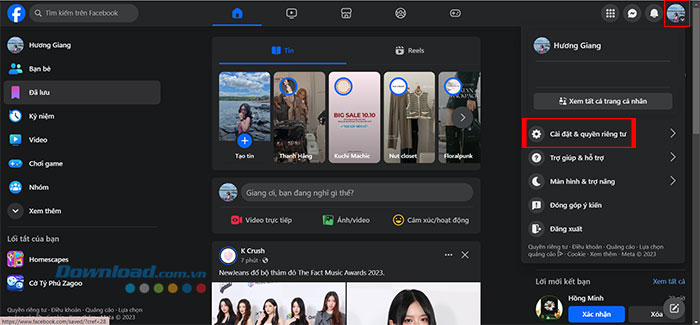 Bước 1: Mở Facebook trên trình duyệt và đăng nhập tài khoản.