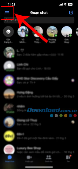Bước 1: Mở ứng dụng Facebook Messenger trên thiết bị và chạm vào biểu tượng ba dấu gạch ngang ở góc trên cùng bên trái.