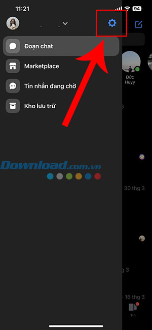Bước 2: Nhấn vào biểu tượng bánh răng cài đặt ở góc bên phải.