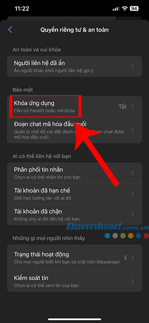 Để khóa Messenger, người dùng phải thiết lập Face ID hoặc Touch ID và mật mã trên thiết bị của mình trước để tính năng này có thể hoạt động. Khi kích hoạt khóa ứng dụng Messenger, người dùng sẽ không phải lo lắng về việc một người khác có thể mở, truy cập cuộc trò chuyện trên Facebook Messenger khi dùng điện thoại của mình.