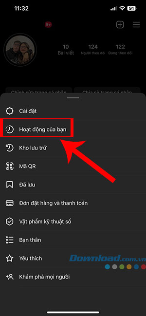Bước 2: Nhấn vào Hoạt động của bạn.