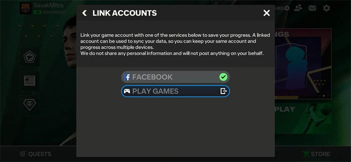 Đầu tiên và quan trọng nhất khi đăng nhập vào tài khoản FC Mobile của mình, hãy đảm bảo liên kết tài khoản đó với tài khoản Facebook hoặc Google Play của mình. Sau khi đăng nhập vào trò chơi lần đầu tiên, game thủ sẽ có tùy chọn đăng nhập với tư cách khách, tức là thông qua thiết bị hoặc qua mạng xã hội của bạn. Tuyệt đối đừng chọn chơi với tư cách tài khoản khách vì nếu mất quyền truy cập vào thiết bị của mình, người chơi cũng sẽ mất tài khoản FC Mobile.