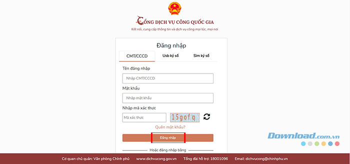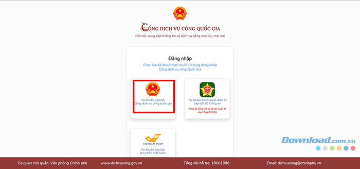Bước 2: Chọn Tài khoản cấp bởi Cổng dịch vụ công quốc gia.