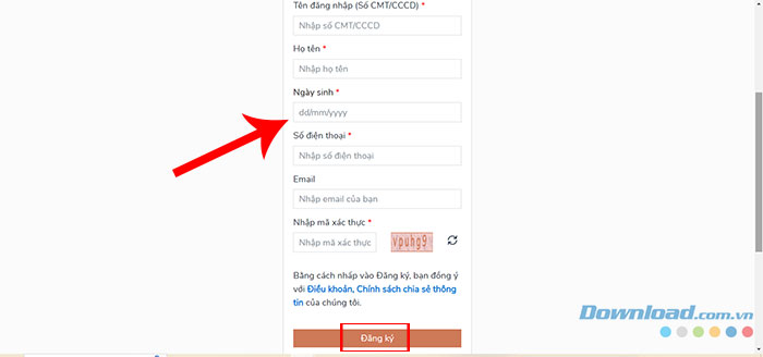 Bước 3: Nhập Tên đăng nhập, Mật khẩu và Mã xác thực. Nhấn nút Đăng nhập và nhập OTP được gửi tới số điện thoại đăng ký tài khoản để hoàn tất quá trình đăng nhập.