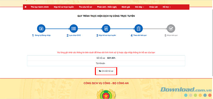 Bước 5: Sau khi thanh toán thành công và được chuyển tới giao diện giống như ảnh dưới đây, hãy nhấn vào Chi tiết hồ sơ.