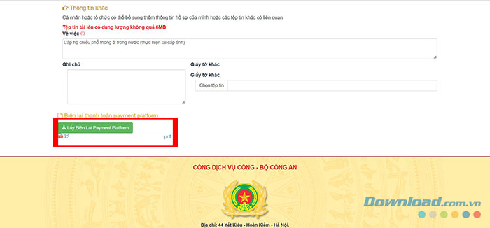 Bước 6: Lướt xuống dưới cùng và nhấn nút Lấy biên lai Payment Platform > mở tệp PDF để xem biên lai xác nhận thanh toán thành công.