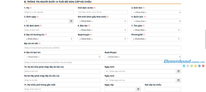 Để nộp hồ sơ cấp hộ chiếu online cho trẻ em dưới 14 tuổi, cần đáp ứng điều kiện: