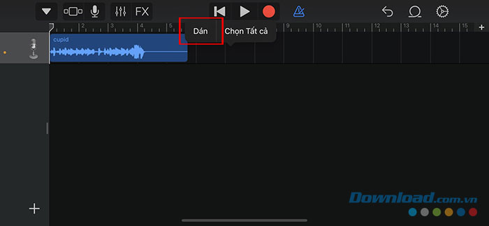Bước 5: Trong cùng dòng bản nhạc, chạm vào khoảng trống bên cạnh âm thanh và chọn Dán từ cửa sổ bật lên.
