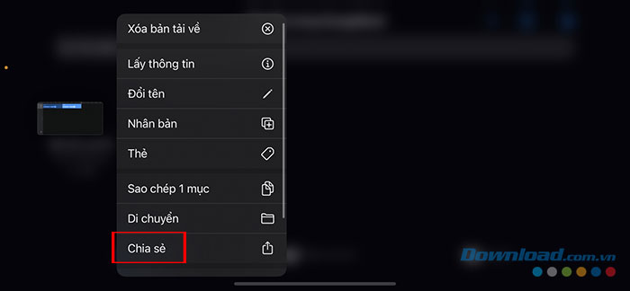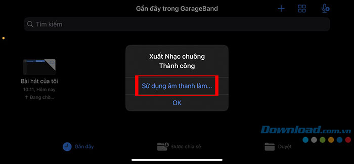 Bước 1: Từ màn hình chính GarageBand, định vị dự án vừa lưu và nhấn giữ vào dự án đó. Sau đó, chọn Chia sẻ trong cửa sổ pop-up.