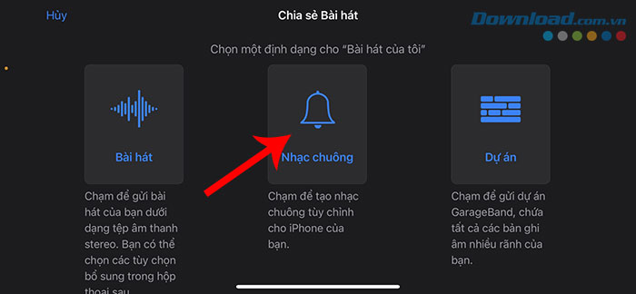 Bước 2: Nhấn vào Nhạc chuông trong giao diện Chia sẻ bài hát.