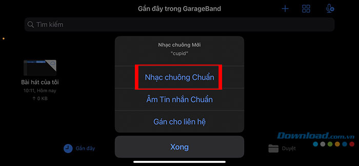 Bước 5: Chọn 1 trong 3 tùy chọn Âm thanh chuẩn, Âm tin nhắn chuẩn và Gắn cho liên hệ để dùng nó làm nhạc chuông.