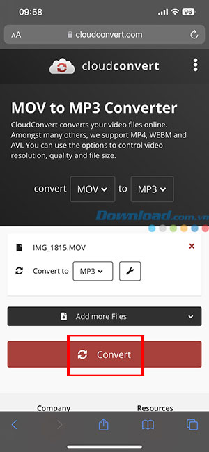 Bước 1: Truy cập trang web chuyển đổi tệp trực tuyến thường dùng. Bài viết này sử dụng CloudConvert và trình duyệt Safari để tiến hành chuyển đổi file.
