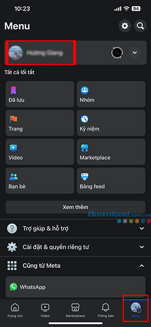 Bước 1: Mở ứng dụng Facebook trên điện thoại, và truy cập tab Menu ở góc dưới cùng bên phải. Sau đó, điều hướng tới hồ sơ trang cá nhân của mình.