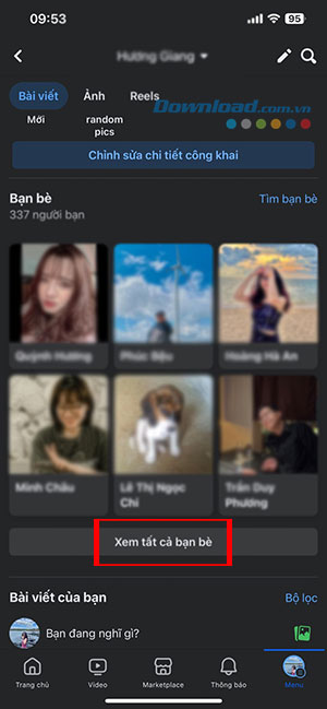 Bước 2: Lướt xuống mục Bạn bè trong trang cá nhân và nhấn vào Xem tất cả.