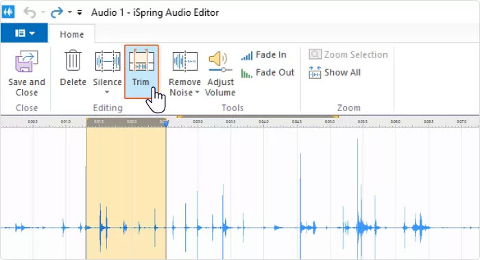 Nếu sử dụng iSpring Suite, công cụ này có sẵn trình chỉnh sửa âm thanh để giúp người dùng tinh chỉnh bản ghi âm.
