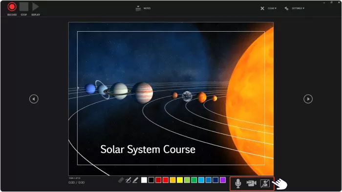 Bước 3: PowerPoint cho phép ghi cả âm thanh và video, mặc định sẽ ghi cả hai. Nếu chỉ muốn ghi âm, hãy tắt camera bằng cách nhấn vào nút tương ứng.