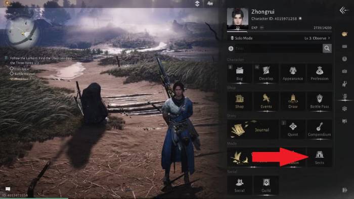 Trong menu chính, vào mục Sect, sau đó chọn nút Join Sect để xem danh sách các phái. Tuy nhiên, người chơi không thể gia nhập ngay lập tức vì trò chơi sẽ cung cấp Entry Clue cho từng phái.