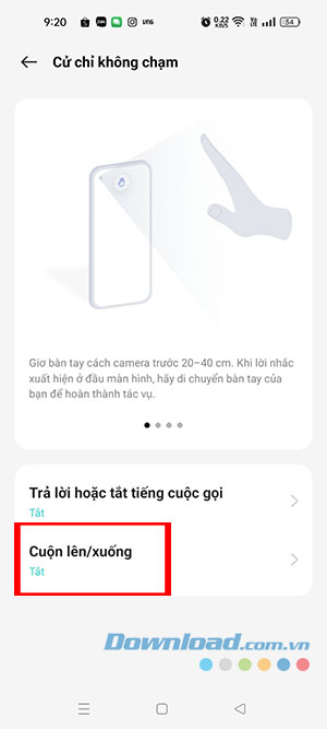 Bước 2: Tiếp theo, nhấn vào Cử chỉ không chạm. Sau đó chọn Cuộn lên/xuống.