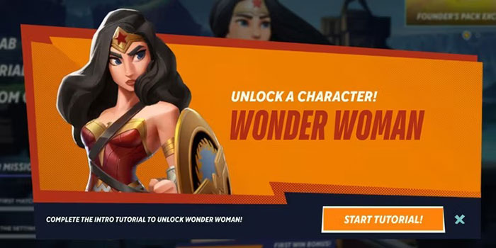 Người chơi chỉ có một nhân vật duy nhất ở đầu game là Wonder Woman. Sau khi hoàn thành chế độ huấn luyện cơ bản, game thủ sẽ nhận được Wonder Woman như một phần thưởng. Mọi người có thể phát triển thuận lợi với nhân vật này Wonder Woman khá tuyệt vời.