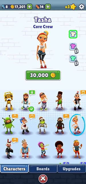 Khi theo dõi danh sách các nhân vật, game thủ sẽ thấy một số nhân vật cần đầu tư tiền để mở khóa. Mọi người nên tập trung thu thập các nhân vật dễ mở khóa hơn, sau đó mới để ý tới những nhân vật cao cấp. Điều này là do nhà phát triển đôi khi gửi sẽ dành tặng mã code Subway Surfers miễn phí để đổi một số nhân vật cao cấp.