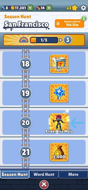 Ngoài ra, người chơi phải tìm cách tận dụng Season Hunt Event trong 20 ngày. Một số nhân vật đặc biệt có thể được mở khóa từ các sự kiện dựa trên cấp bậc này, thậm chí còn có một lượng xu thưởng khá lớn.