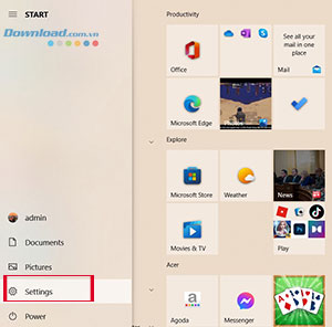 Nhấp vào biểu tượng Windows ở góc dưới cùng bên trái của màn hình, sau đó nhấp vào Settings hoặc sử dụng phím tắt Windows + I.