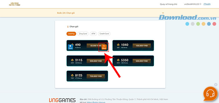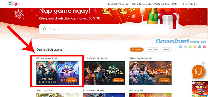 Bước 1: Truy cập trang nạp thẻ ZingPay của VNG và chọn Liên Minh Huyền Thoại.