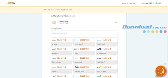 Lựa chọn thanh toán bằng thẻ ngân hàng nội địa, mọi người cần chọn ngân hàng mình đang sử dụng.