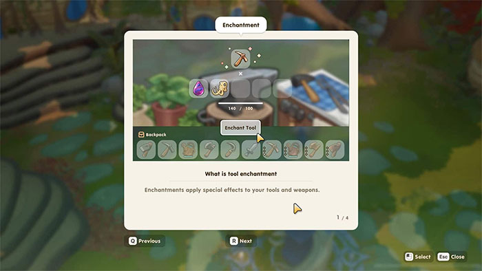 Coral Island có nhiều công cụ với những chức năng cụ thể, chẳng hạn như khai thác, chặt gỗ và trồng trọt. Người chơi càng tiến bộ thì sẽ càng tạo ra được những công cụ tốt hơn. Tuy nhiên, người chơi có thể tạo ra những công cụ đặc biệt bằng tính năng phù phép Enchanting trong Coral Island. Nó cho phép game thủ thêm nhiều bonus khác nhau vào vật phẩm của mình, điều này sẽ làm tăng đáng kể hiệu quả của chúng.