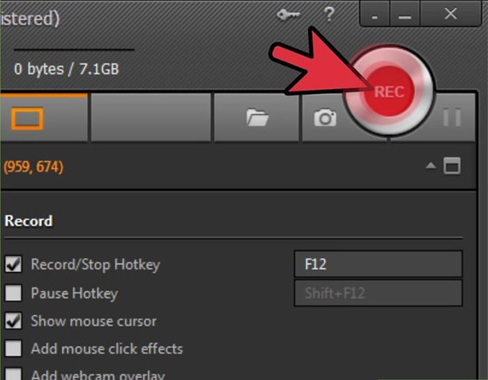 Bước 4: Nhấp vào nút REC màu đỏ để bắt đầu ghi. Người dùng có thể nhấn nút REC ở góc trên bên phải của cửa sổ ghi hình hoặc nút REC trong giao diện chính của Bandicam.