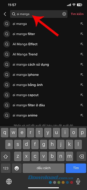 Bước 2: Nhập AI Manga vào thanh tìm kiếm.
