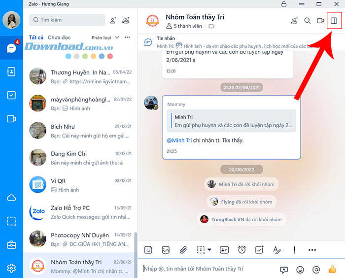 Bước 1: Mở ứng dụng Zalo trên máy tính và truy cập cuộc trò chuyện nhóm mà mọi người đang muốn rời khỏi đó.