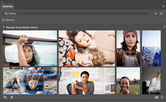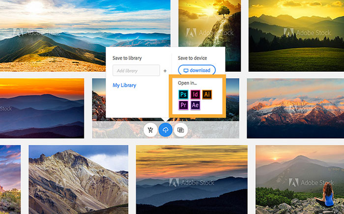 Mọi người có thể tìm kiếm nội dung Adobe Stock trực tiếp từ các ứng dụng dành cho máy tính để bàn của Adobe hỗ trợ Creative Cloud Libraries, chẳng hạn như Photoshop, Illustrator, InDesign, Dreamweaver, Premiere Pro, After Effects, Dimension và Animate.