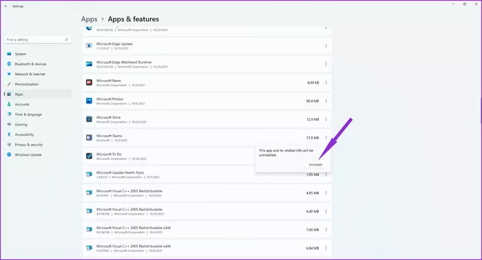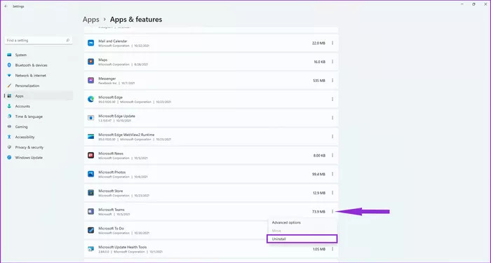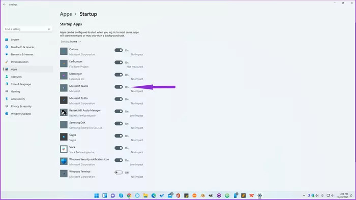Bước 8: Tìm Microsoft Teams trong danh sách và tắt công tắc bên cạnh nó.