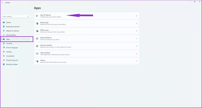 Bước 3: Nhấp vào Apps & Features để xem danh sách tất cả các ứng dụng đã cài đặt.