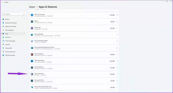 Bước 4: Tìm Microsoft Teams trong danh sách ứng dụng.