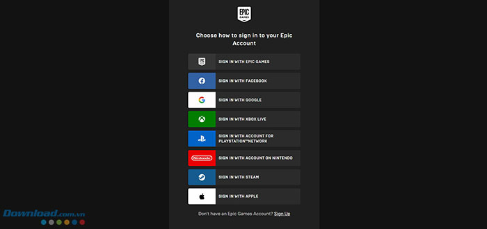 Bước 2: Mọi người sẽ được chuyển hướng đến trang đăng nhập hoặc tạo Tài khoản Epic Games.