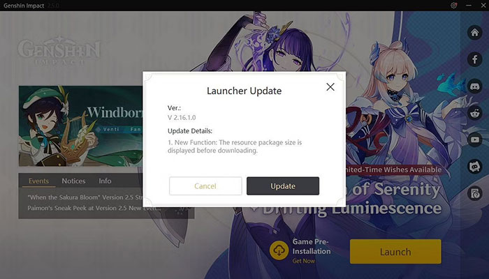 Cài đặt trước bản cập nhật Genshin Impact 3.0 giúp giảm thời gian trò chơi xác minh tệp và cập nhật tài nguyên.