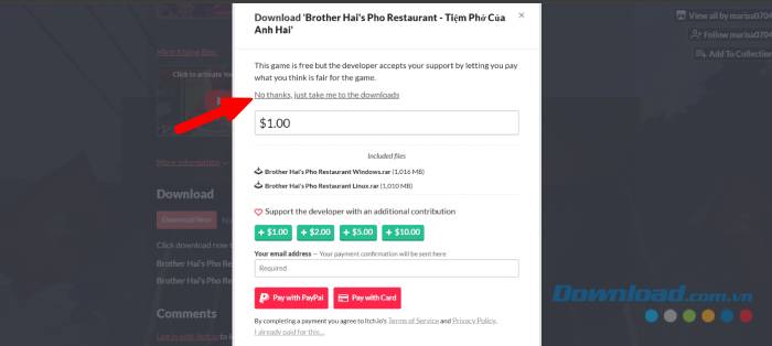 Bước 2: Nhấn vào No thanks, just take me to the downloads để tải trò chơi miễn phí.