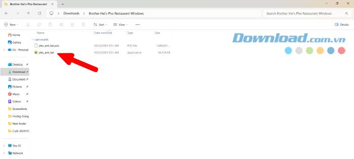 Bước 3: Lựa chọn thư mục lưu trữ tệp, sau đó mở tệp cài đặt trò chơi đã giải nén. Tiếp tục, click đúp chuột vào pho_anh_hai (Application) có logo trò chơi để bắt đầu khởi chạy game.