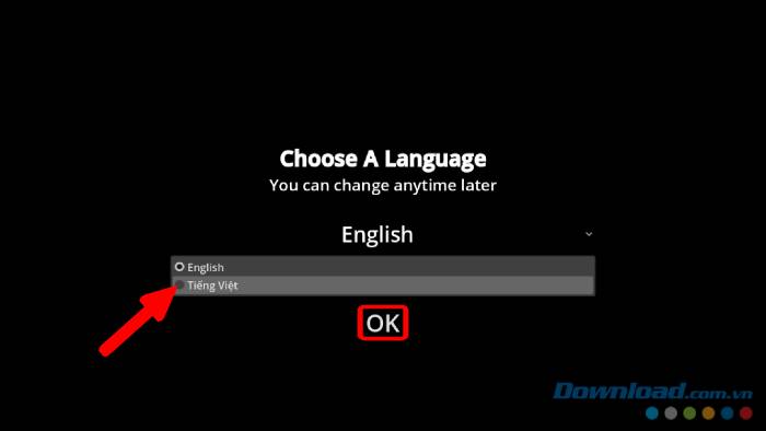 Bước 4: Nhấn chọn ngôn ngữ Tiếng Việt và ấn OK.