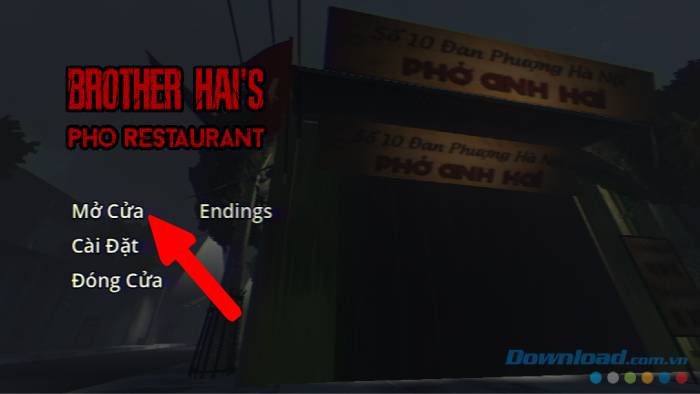 Bước 6: Nhấn Mở cửa để bắt đầu hành trình kinh doanh tiệm phở đầy kỳ bí.