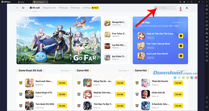 Bước 4: Nếu trước đó đã cài đặt mô phỏng Android LDPlayer 9, mọi người chỉ khởi chạy trình giả lập và nhấn vào thanh tìm kiếm ở góc trên cùng.