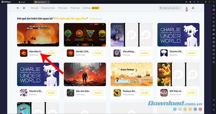 Bước 3: Khi quá trình cài đặt và khởi chạy LDPlayer 9 hoàn tất, nếu tải game từ trang tải Điện Biên Phủ 56 Ngày Đêm trên PC, thì mọi người sẽ được điều hướng tới Cửa hàng LDPlayer ngay lập tức.