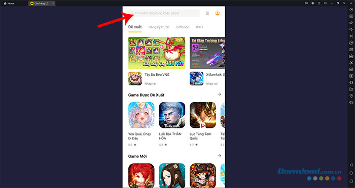 Bước 4: Nếu trước đó đã cài đặt mô phỏng Android LDPlayer 9, mọi người chỉ khởi chạy trình giả lập và nhấn vào thanh tìm kiếm ở góc trên cùng.