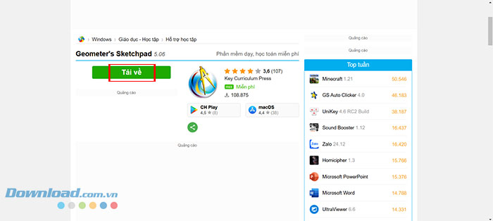 Bước 1: Truy cập trang tải Geometer’s Sketchpad cho Windows hoặc Geometer's Sketchpad cho Mac và nhấn nút Tải về.