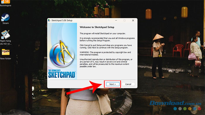 Bước 4: Nhấn Yes để bắt đầu cài đặt và nhấn nút Next trong cửa sổ Sketchpad 5.06 Setup.