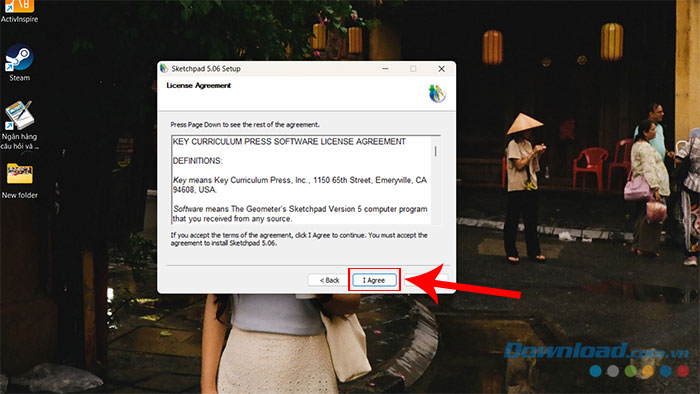 Bước 5: Chấp nhận điều khoản của Geometer’s Sketchpad bằng cách nhấn I Agree.