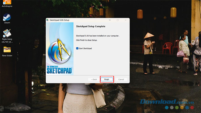 Bước 8: Sau khi phần mềm hoàn tất cài đặt, chọn Start Sketchpad và nhấn Finish.